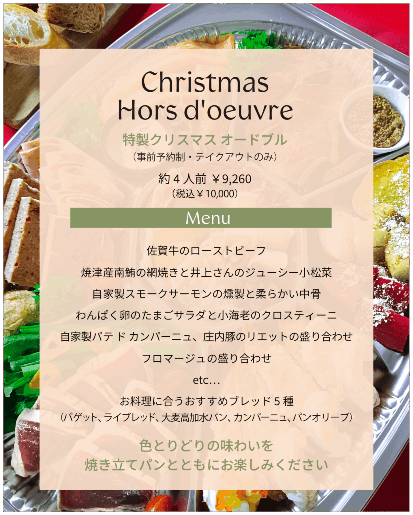 Farm to Meのクリスマスオードブルのご予約を開始いたしました。