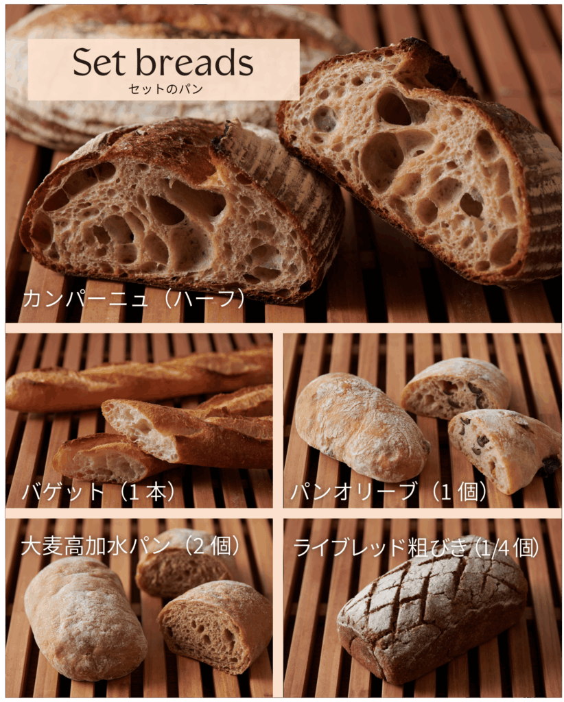 お料理とパンは、それぞれが引き立てあうようにマリアージュを考えてご用意いたしました。